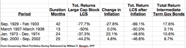 -When inflation is taken into account major stock bear markets generally consume half or more of the purchasing power of stocks